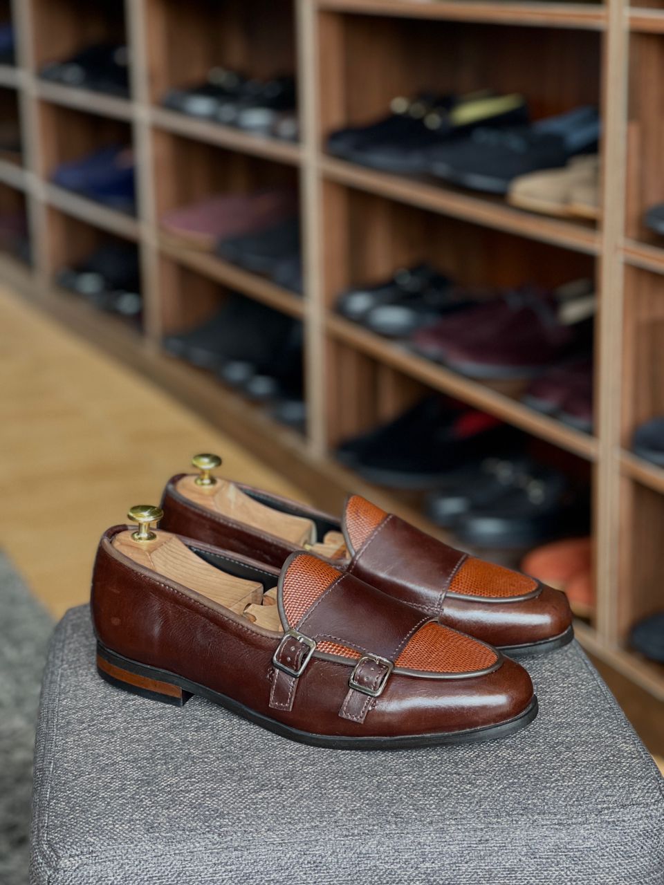 BLEND OF SMOOTH LEATHER AND DESIGN LEATHER